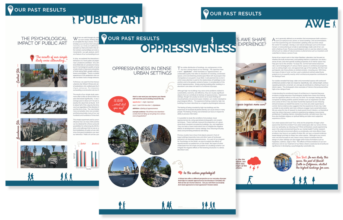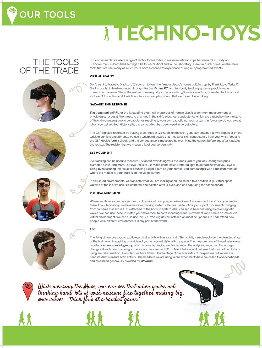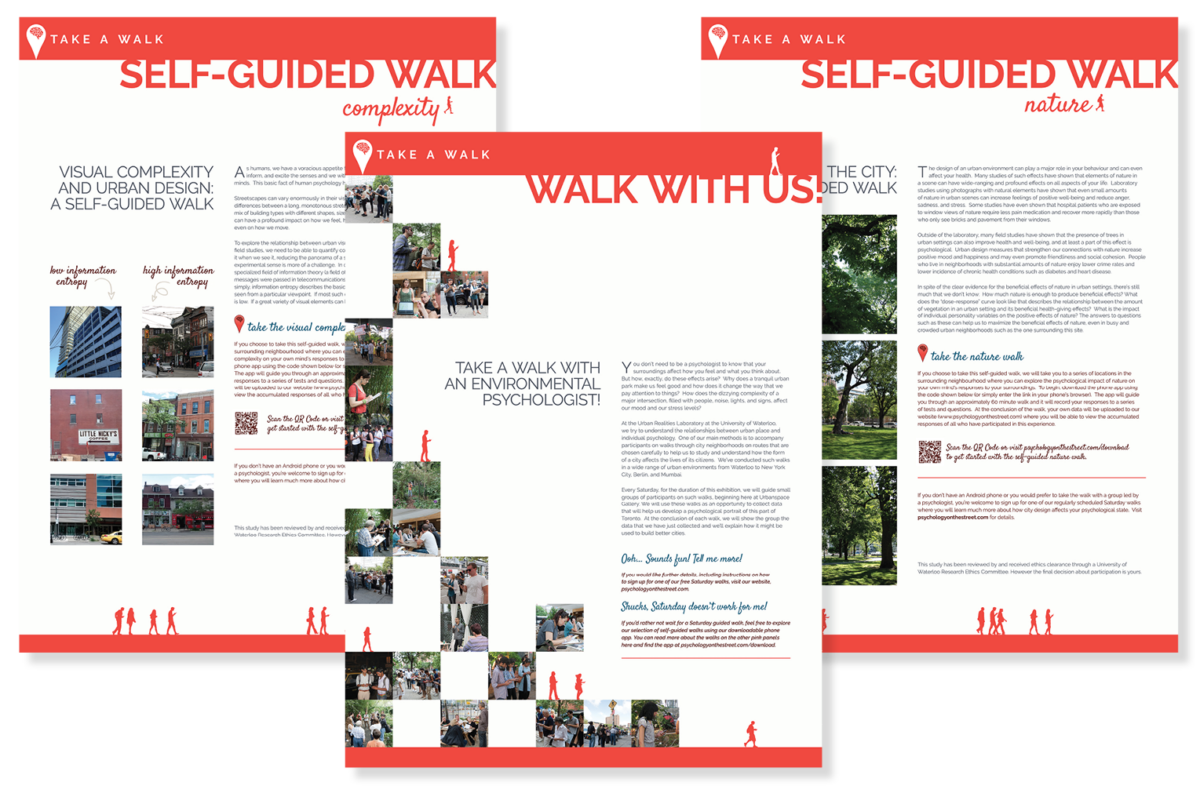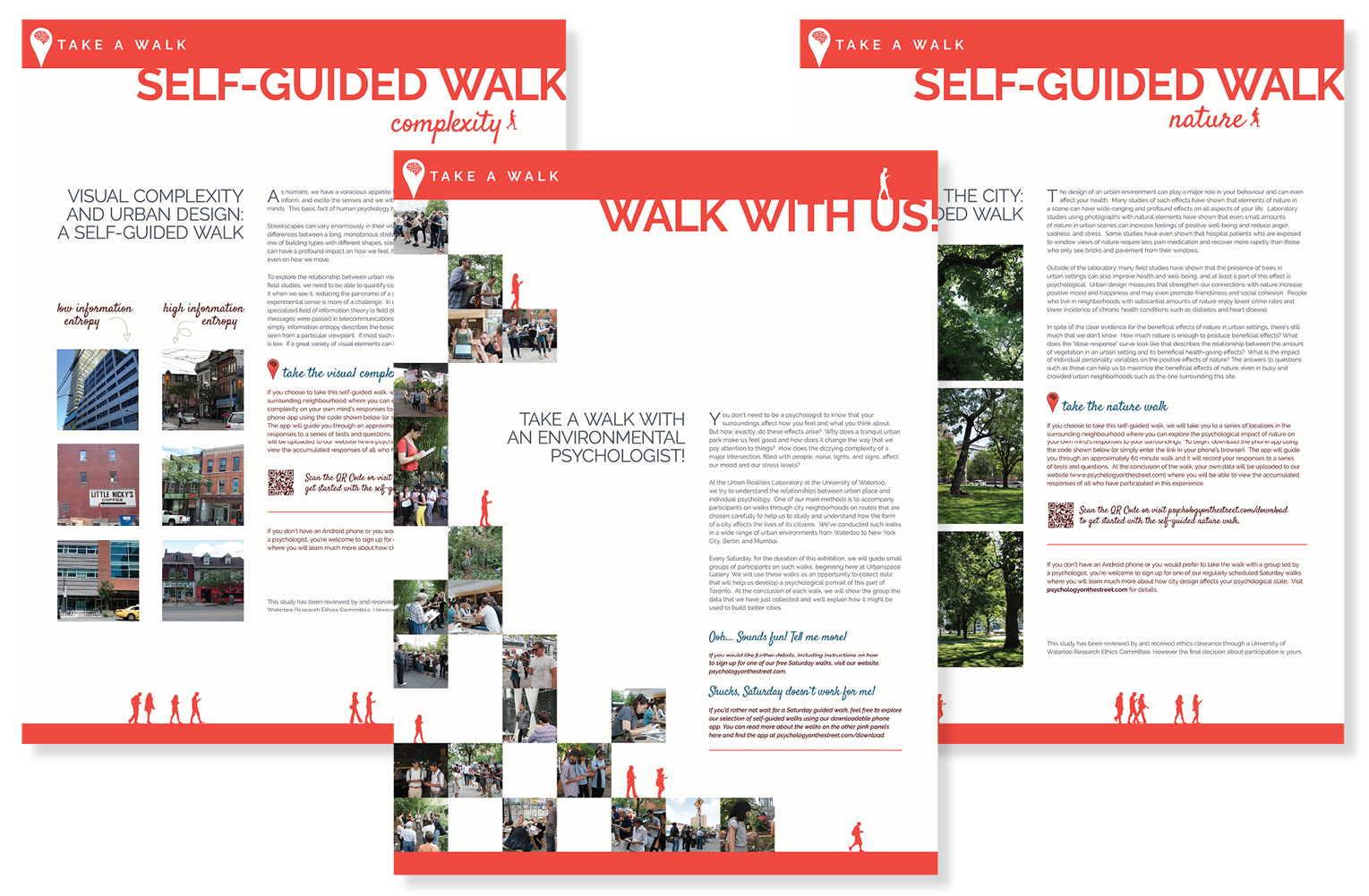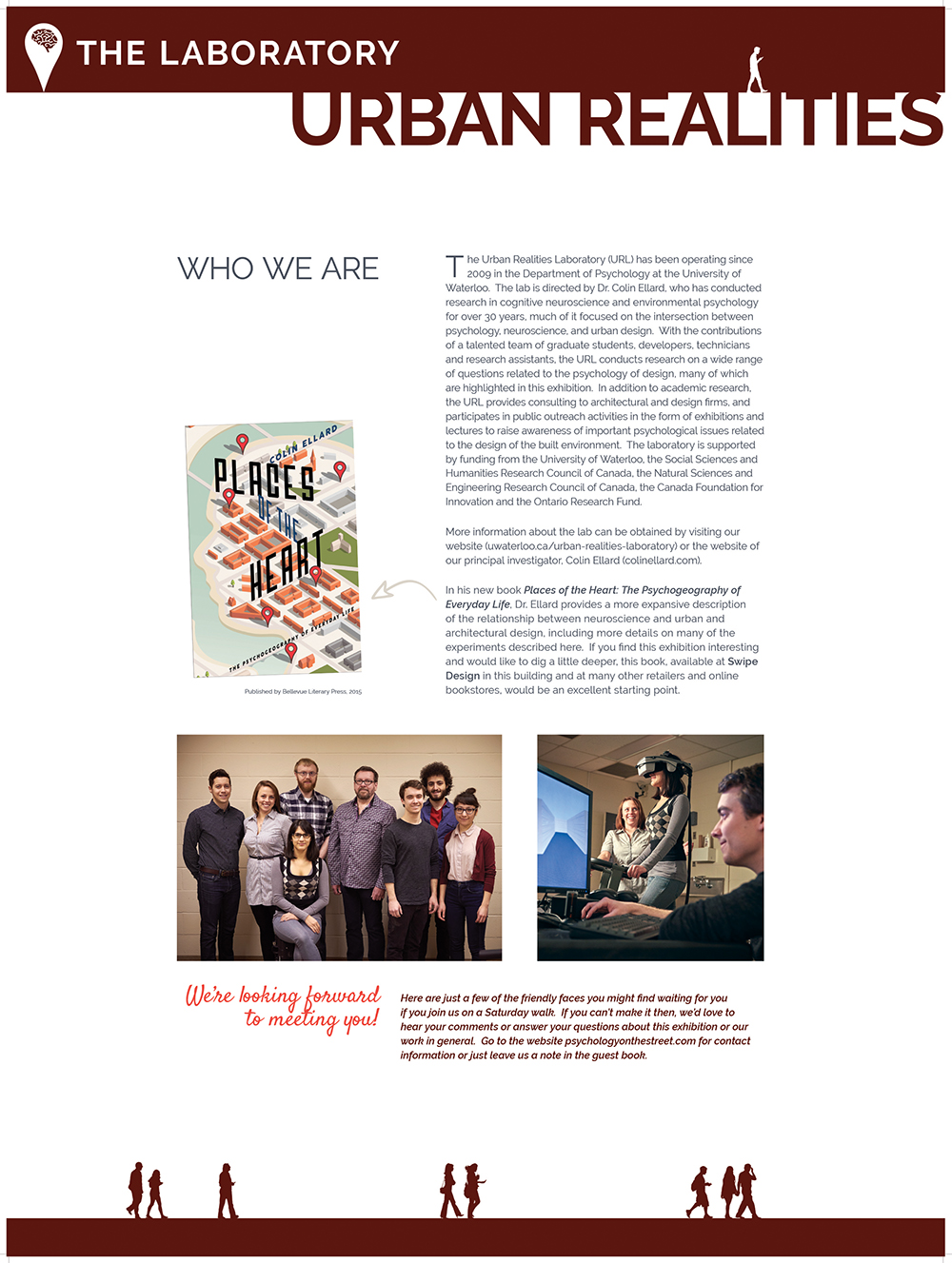 Dr. Colin Ellard was to both present and extend his research at the Urbanspace Gallery in Toronto. I delivered logo design, content organization, panel design, promotional material design, and gallery space layout for this week long event.